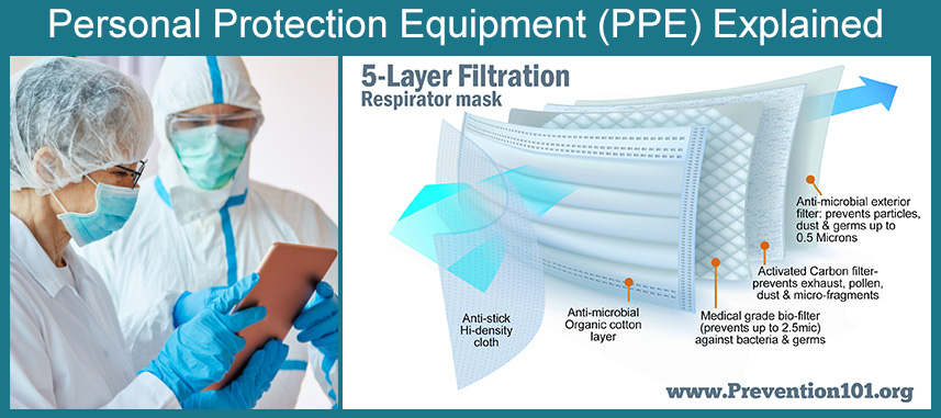 Due to our current Coronvirus pandemic, the entire world quickly learned about protective technologies that made up our Personal Protection Equipment or PPE's. This education aids the end user to understand the level of safety they bring in order to properly determine how they are to be used. In this diagram, the commonly seen blue surgical mask is made up of 5 layers, designed to protect from exhaust particles, pollen, dust, bacteria and germs up to 2.5 - 0.5 microns. The Coronavirus' recorded size is 0.12 microns. (click image to enlarge) |